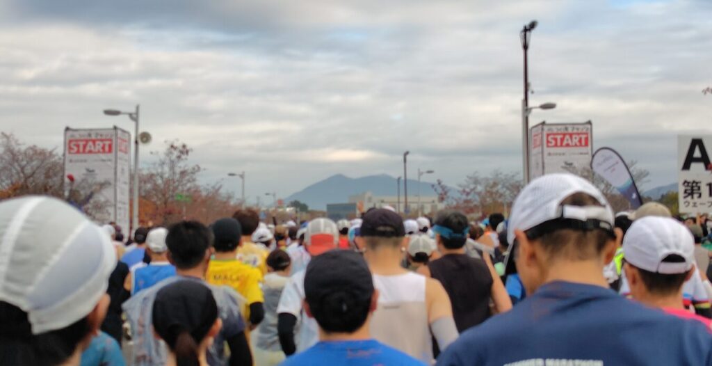 会場からスタート地点までは少し離れていますが、軽く走りながら準備運動代わりとしました。