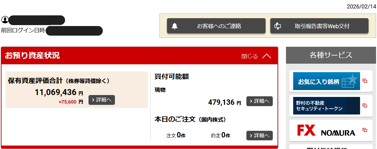 ちなみに、持株会の関係で野村證券の口座でこの株のみを保管しています。