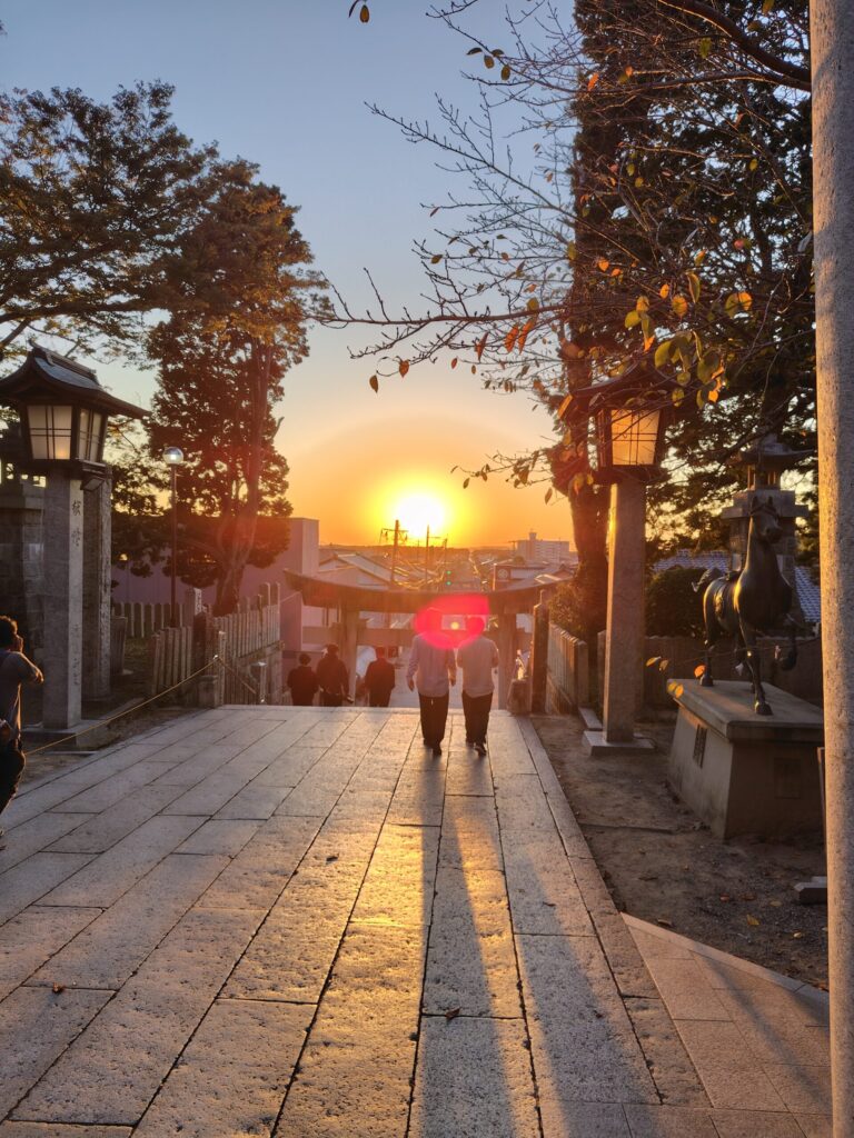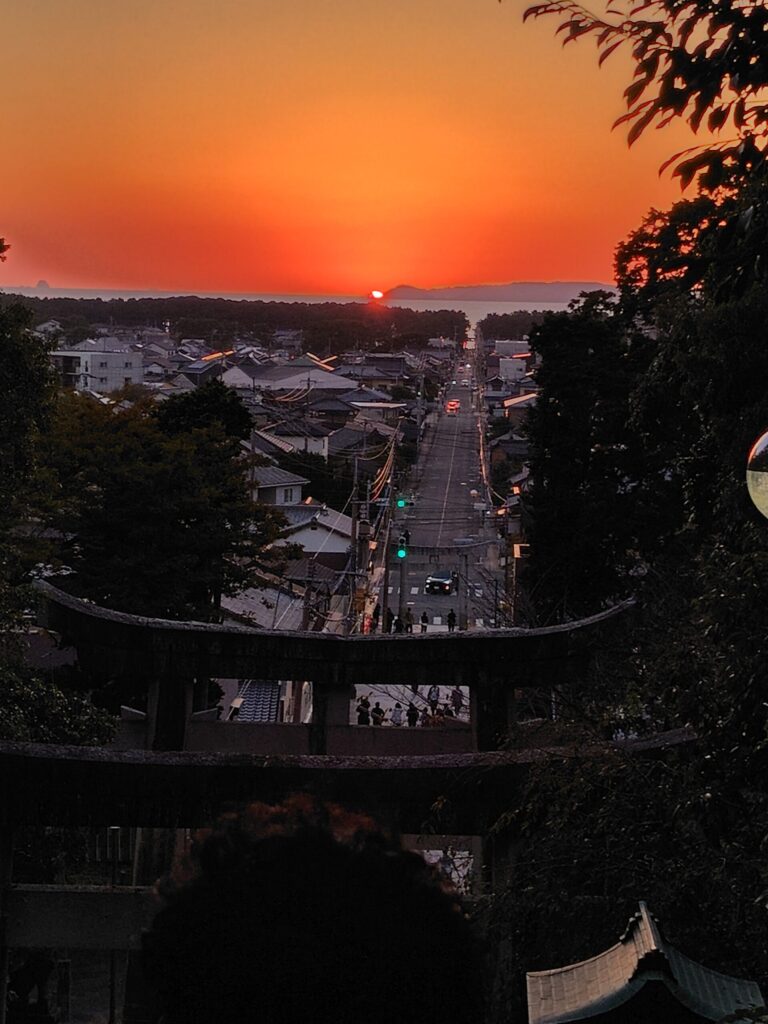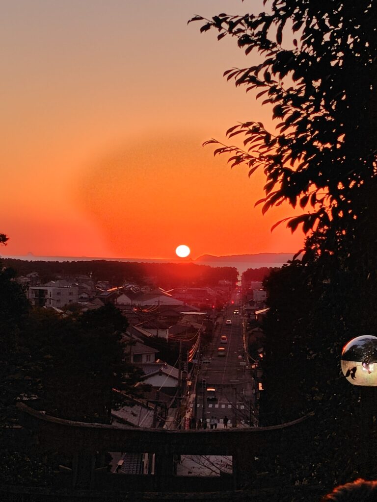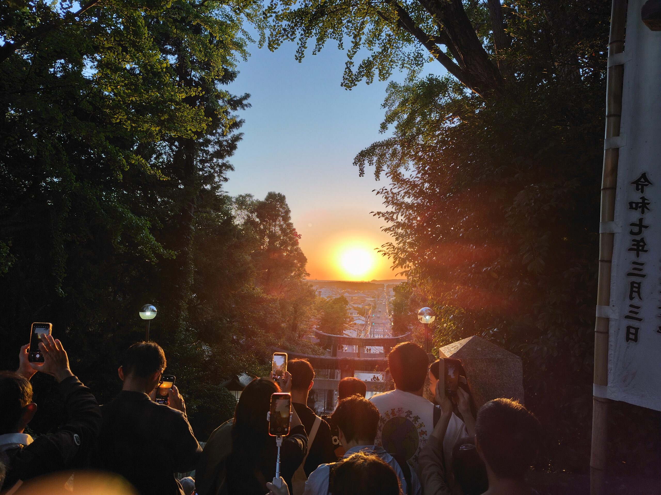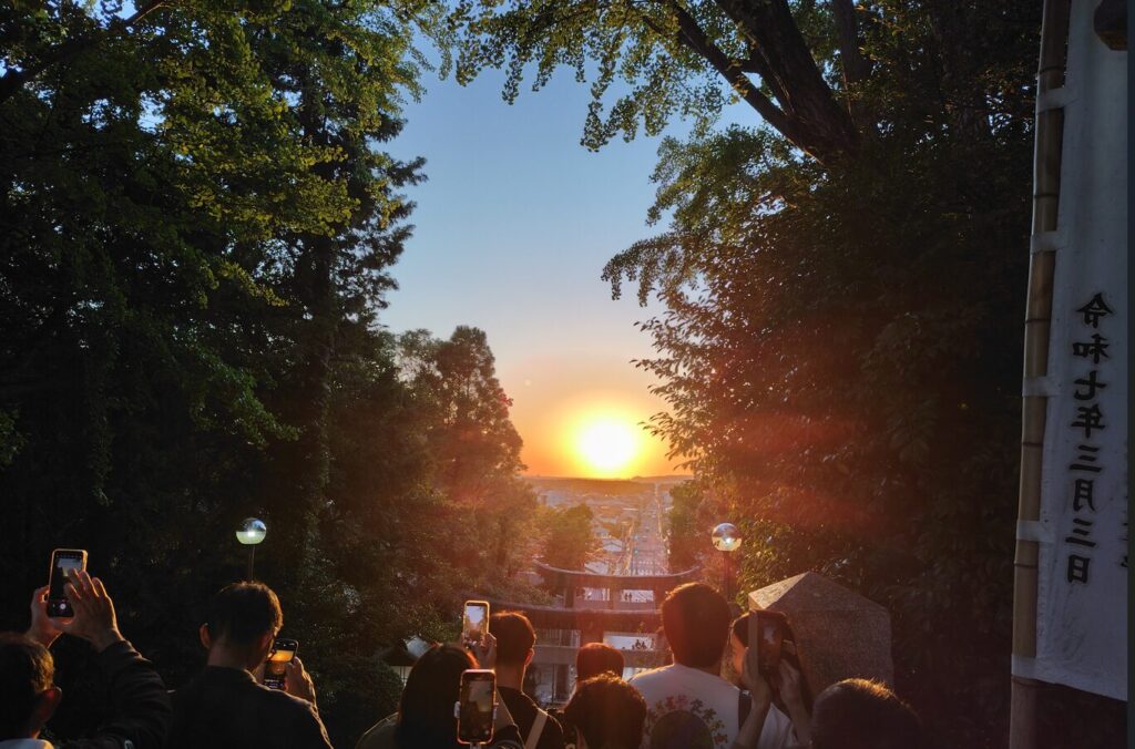 この期間は神社の参道と夕日が一直線に見える期間です。