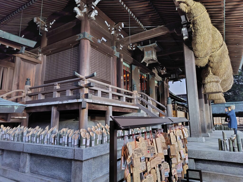 すると先日参加した「夕日のまつり特別祈願祭」でシールを貼った竹筒が拝殿の周りに並べられてありました。