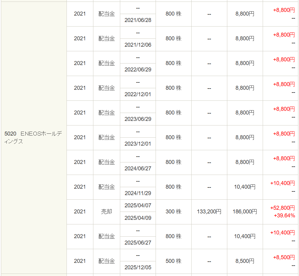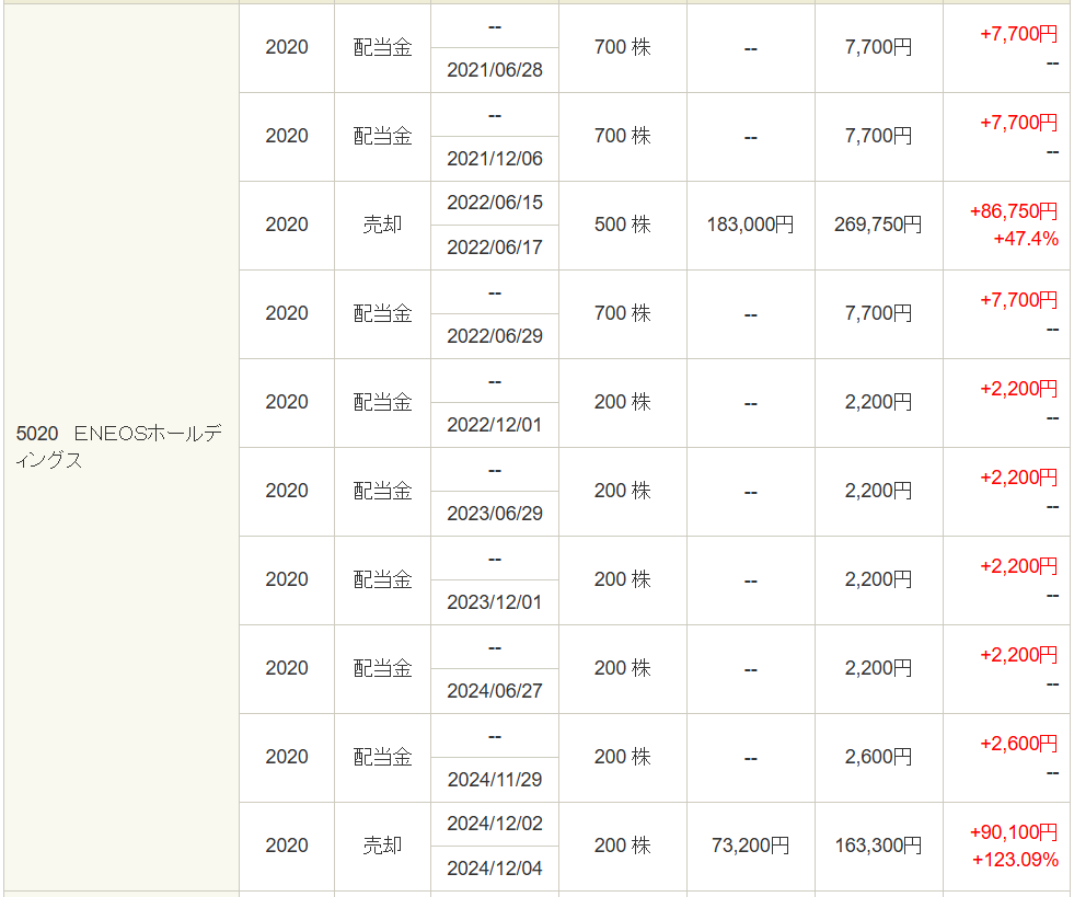 ENEOS株がトータルでどのくらいの利益が出ているか調べてみました。
