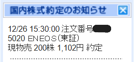 私は12月26日現在はENEOS株の500株がその対象として残っています。