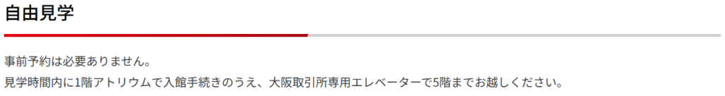 JPXのホームページで見学方法を調べると、以下のように書かれていました。