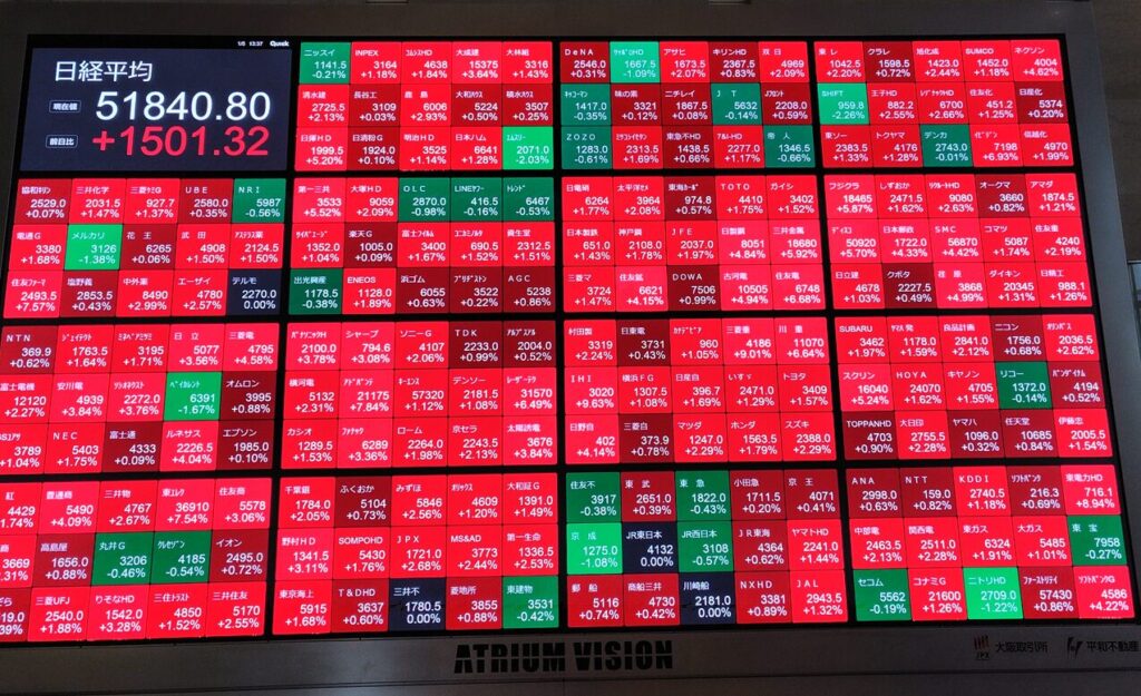 この日は大発会でしたが、ちょうど日経平均も1500円以上を上げているタイミングでした。