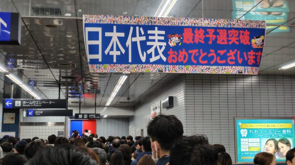 また、帰りの浦和美園駅までは大混雑でしたが、早速、「最終予選突破おめでとうございます」の