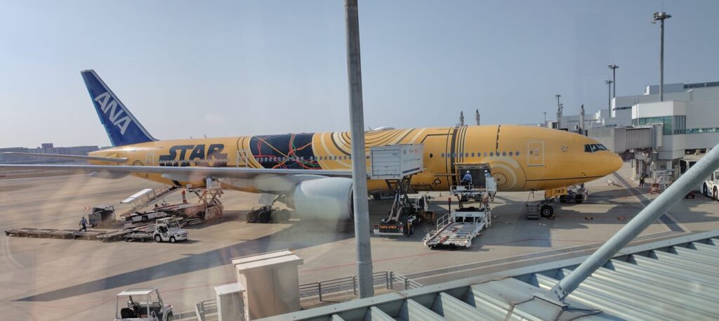 そして、福岡空港に到着して飛行機から降りた後、自分の乗っていた飛行機を見ると