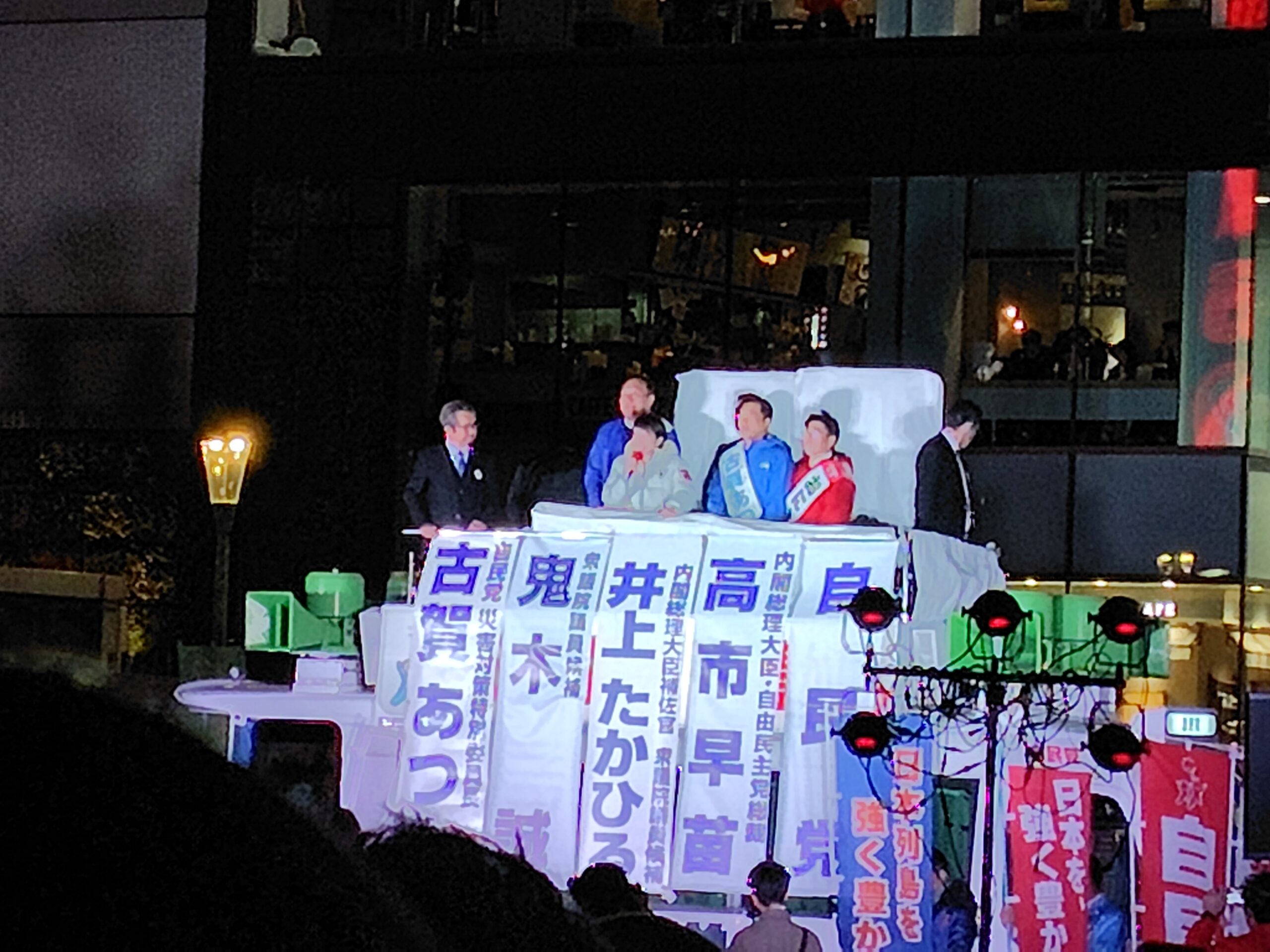 予定通り、1月30日(金)18時より自由民主党の街頭演説がありました。