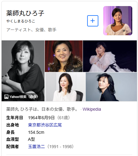 「今何歳なのかな?」とふとWikipediaで薬師丸ひろ子さんを検索してみたら、1964年6月9日生まれの61歳でした。