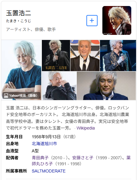 「もう還暦超えてるの!」と驚きましたが、その中に「配偶者 玉置浩二」とありました。