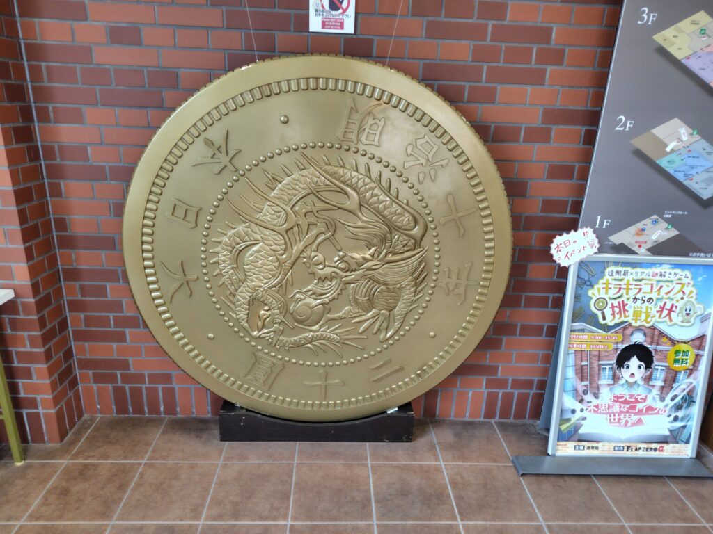 そして、入り口には大きな硬貨が出迎えてくれました。