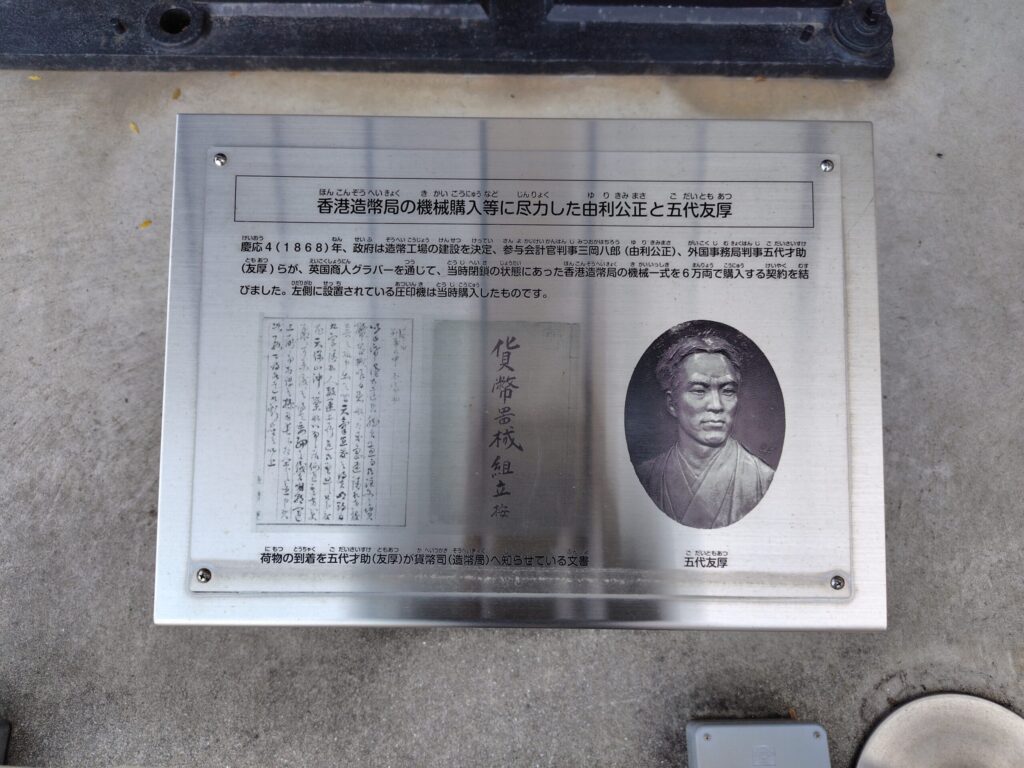 そして、黒のトネリエ圧延機の前にプレートがあり、そこには先ほど造幣局に来る前に見た